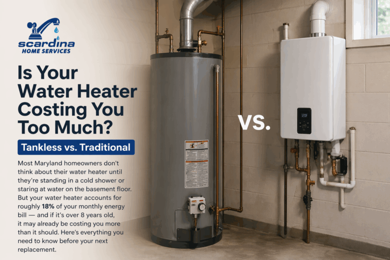 Yes, and this is something Maryland homeowners in particular should take seriously. Annual maintenance — which typically involves flushing the heat exchanger to remove mineral scale — keeps the unit operating at peak efficiency and protects the warranty. Given central Maryland’s moderately hard water, skipping this maintenance can shorten the lifespan of a tankless unit and reduce its energy efficiency over time. The good news is that maintenance on a tankless unit is simpler and less involved than draining and flushing a storage tank, and Scardina offers scheduled maintenance plans to keep yours running at its best.